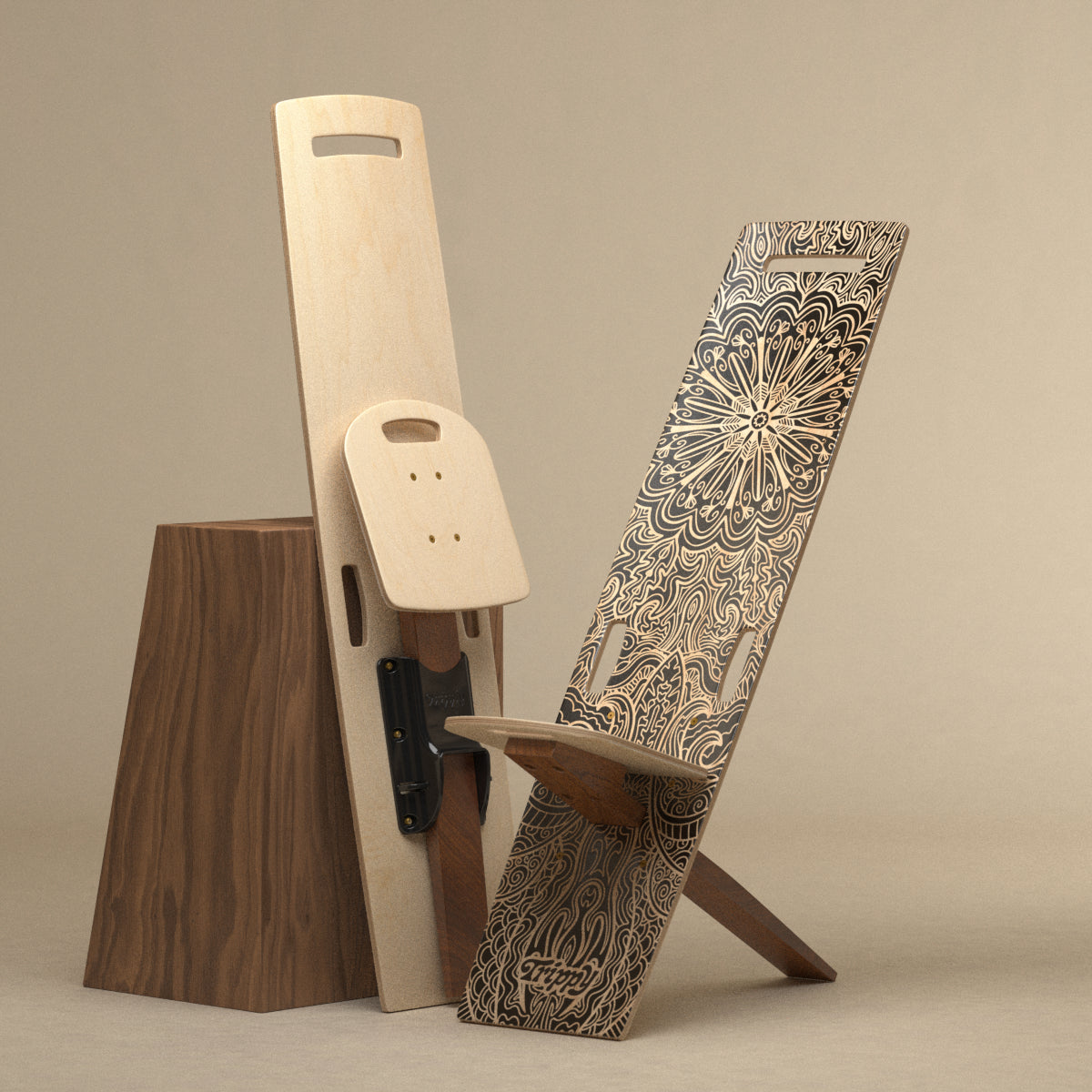Each Trippy Chair is crafted with premium maple and sapele wood, water-resistant coatings, and UV-resistant inks (for printed chairs). They’re perfect for a classy, relaxing sit, whether indoors or outdoors.